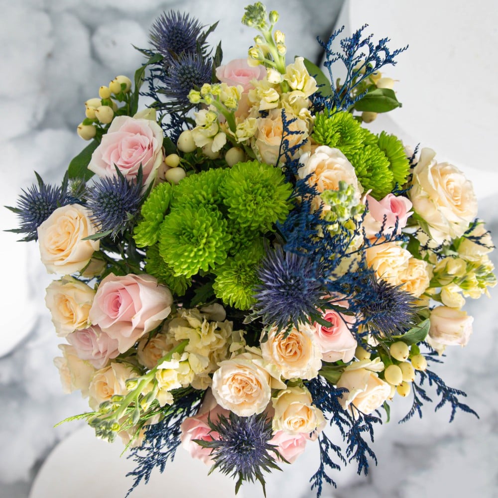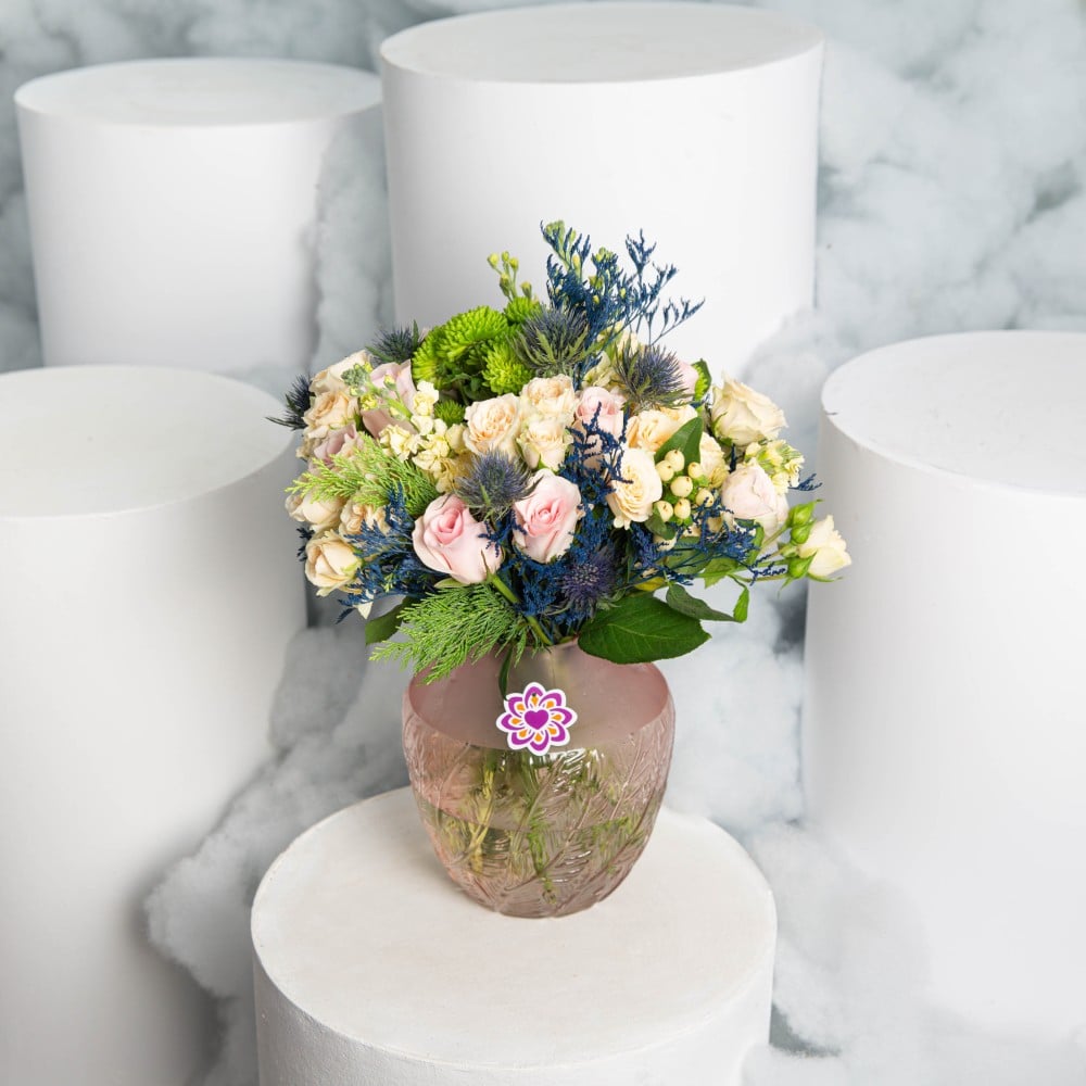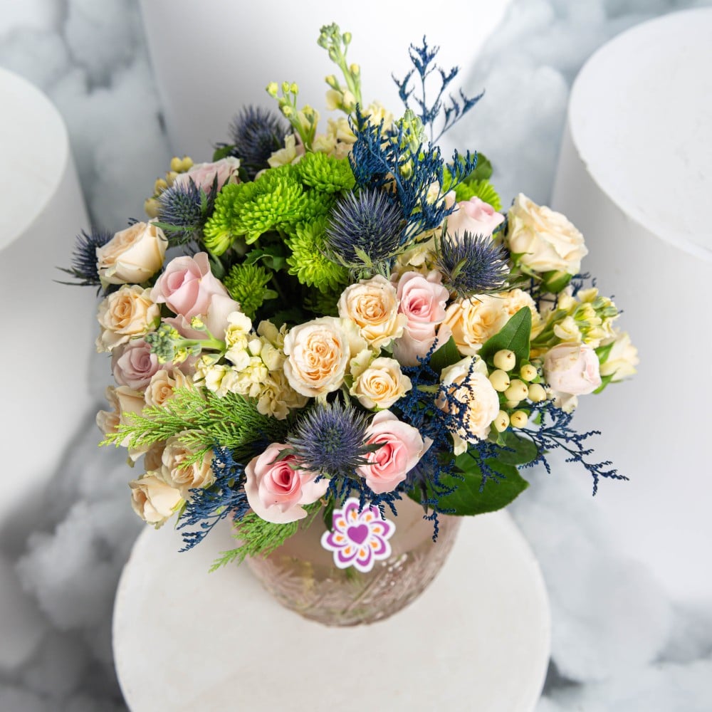 باقة وردية مع ازهار ممزوجة بألووان هادئة مريحة