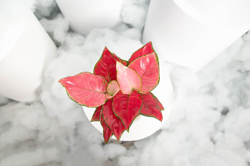 نبتة اجلونيما حمراء من النباتات الداخلية تضيف جمال لتصميم المنزل او المكتب